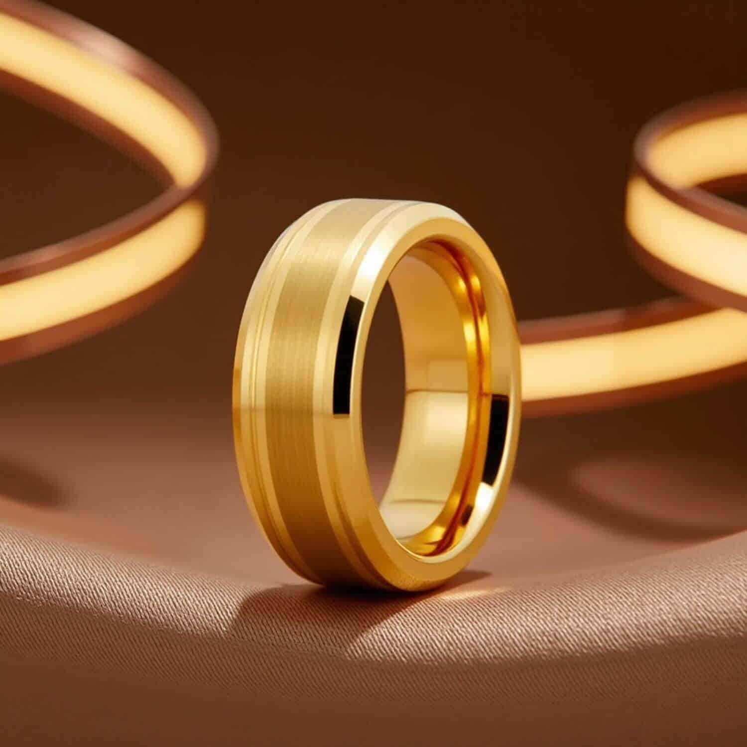 The Guardian is a full gold tungsten band available at 6mm and 8mm. The gold PVD finish covers the entire surface.