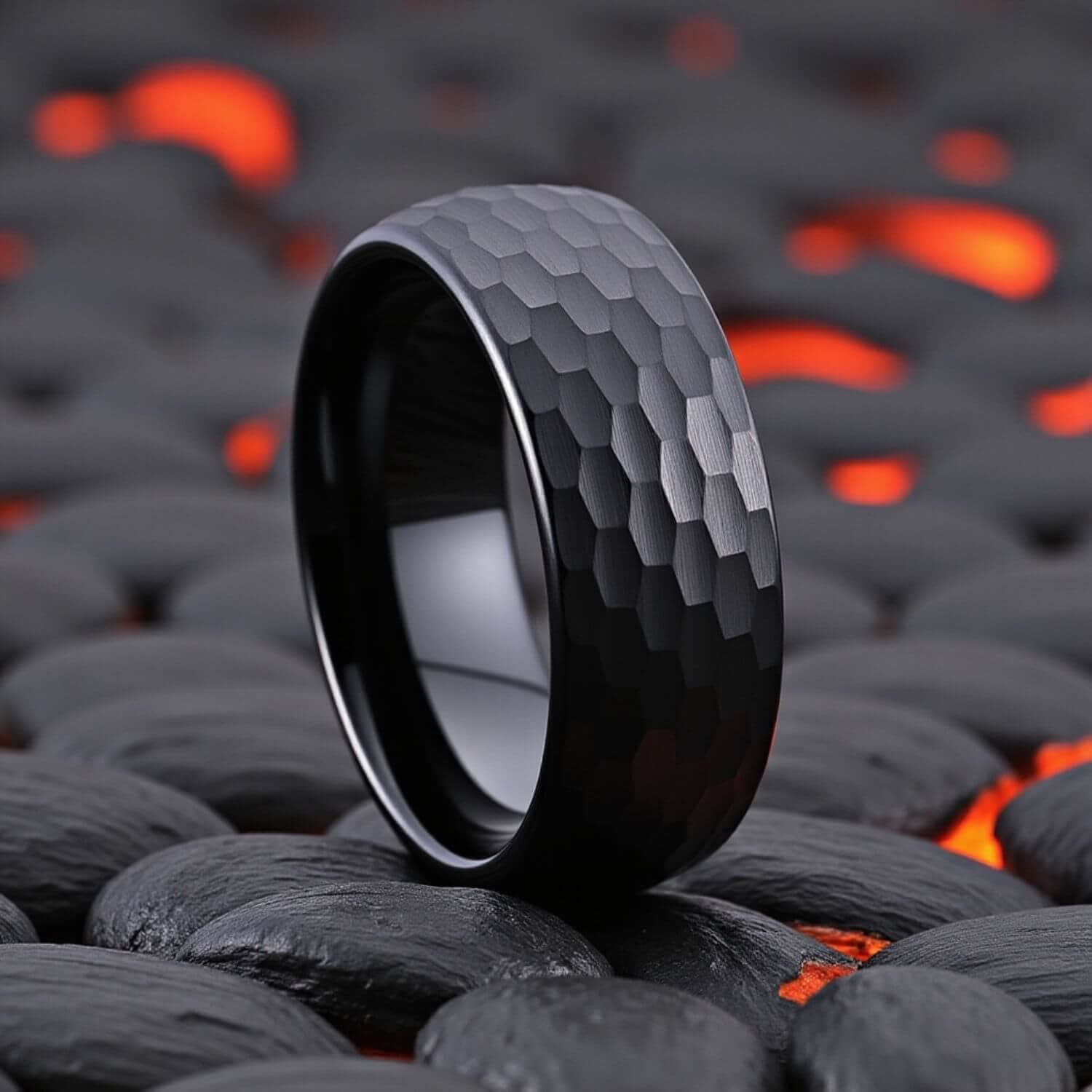 At 8mm the ring has real presence on the hand. The polished black surface holds its depth.