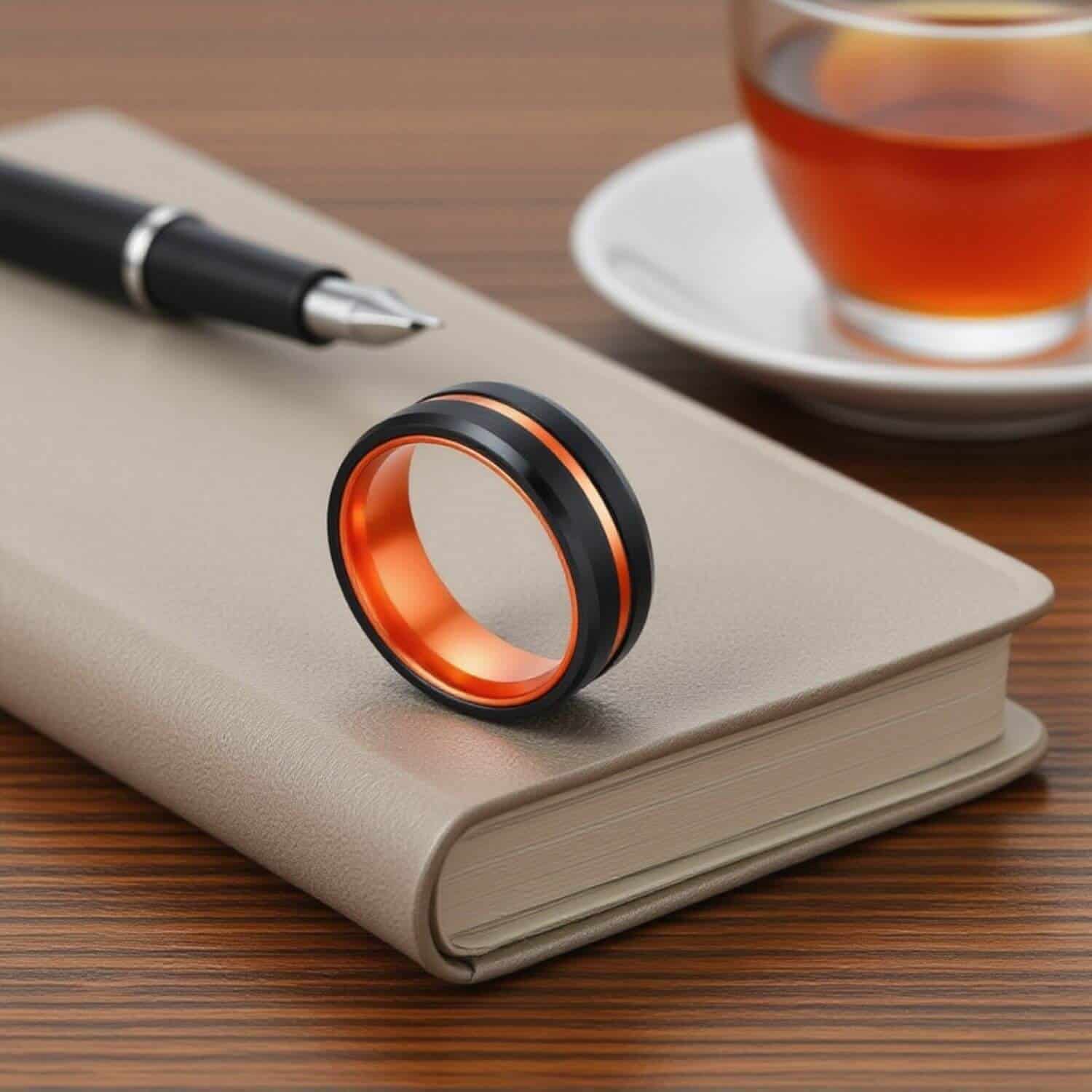 Men's Tungsten Ring, Black and Orange, 8 mm