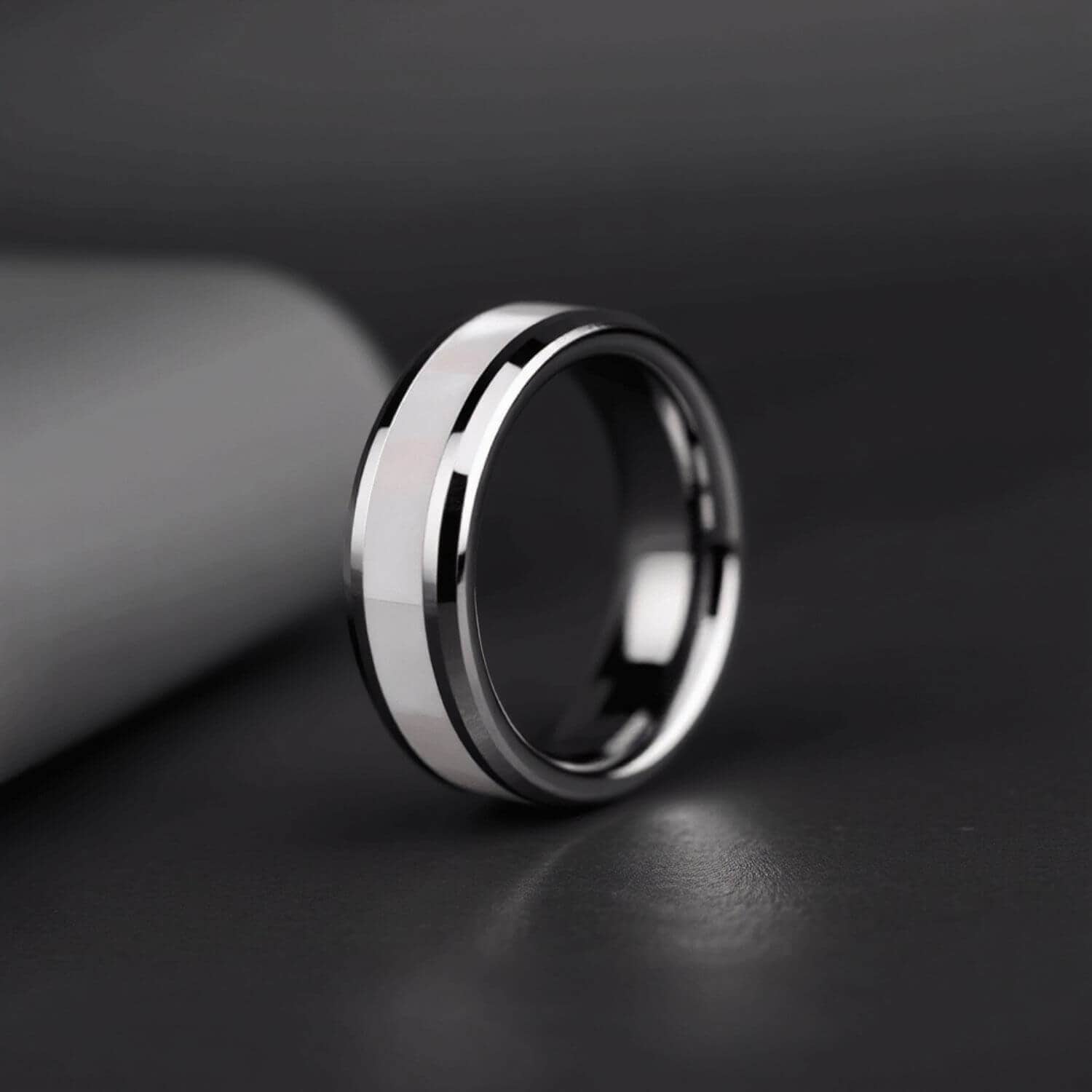 A plain polished silver band needs to hold its surface through daily wear to remain worth wearing. The polished finish on a gold or silver precious metal band will show contact marks and dull over time at the highest wear points. Tungsten carbide is hard enough to hold the polished silver finish without those marks appearing.
