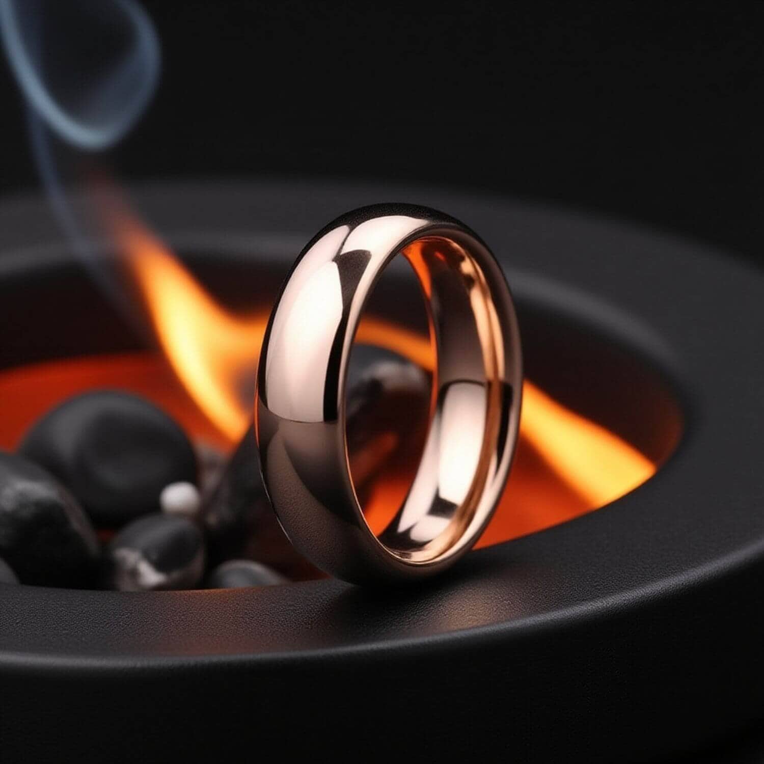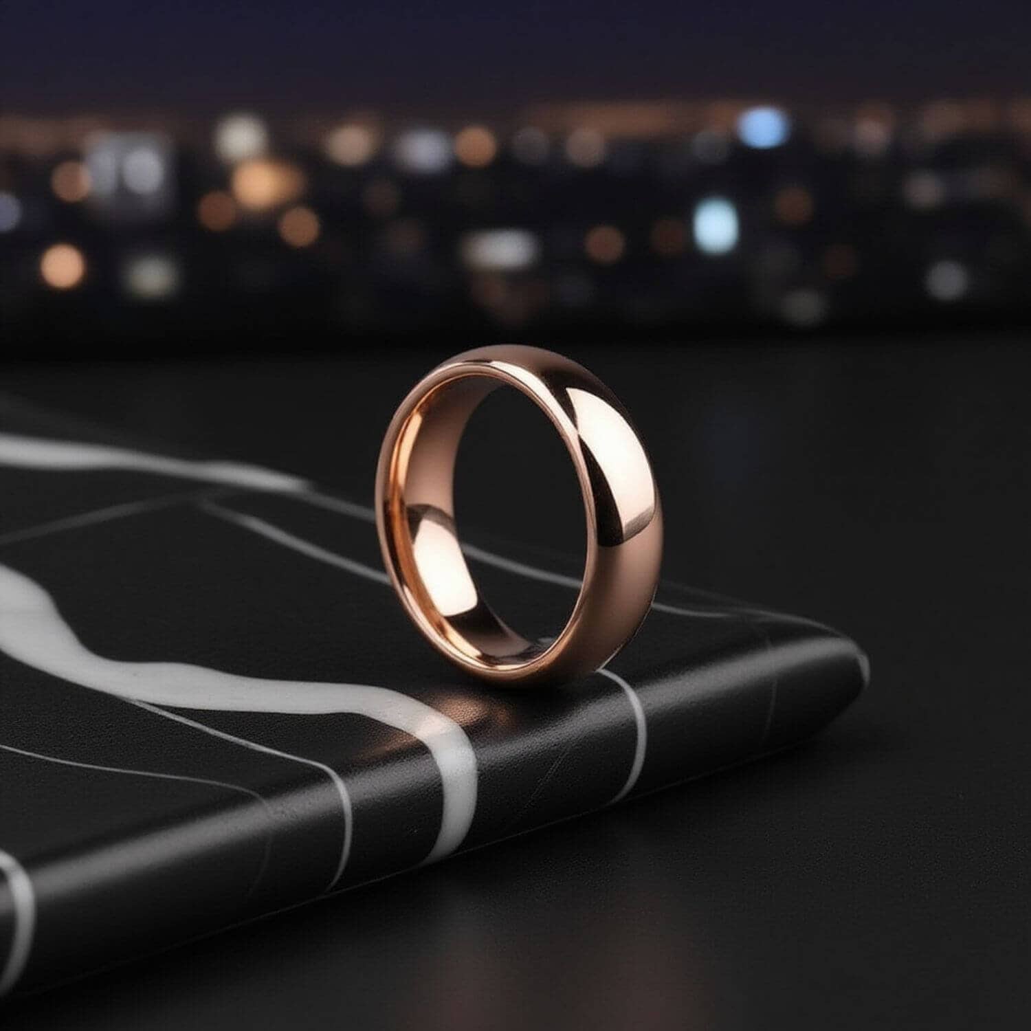 The material is the same tungsten carbide used across the jewellery industry. The PVD coating is the same process used on high-end watch cases. The difference between this and a traditional rose gold band is that this one keeps its finish through years of daily wear.