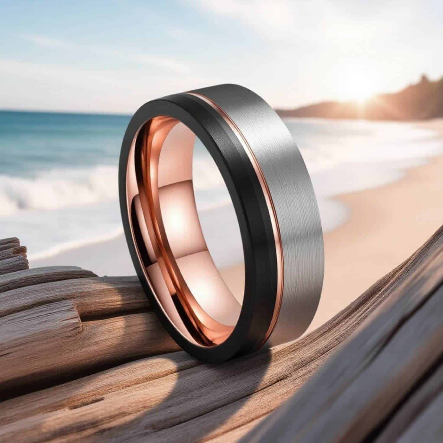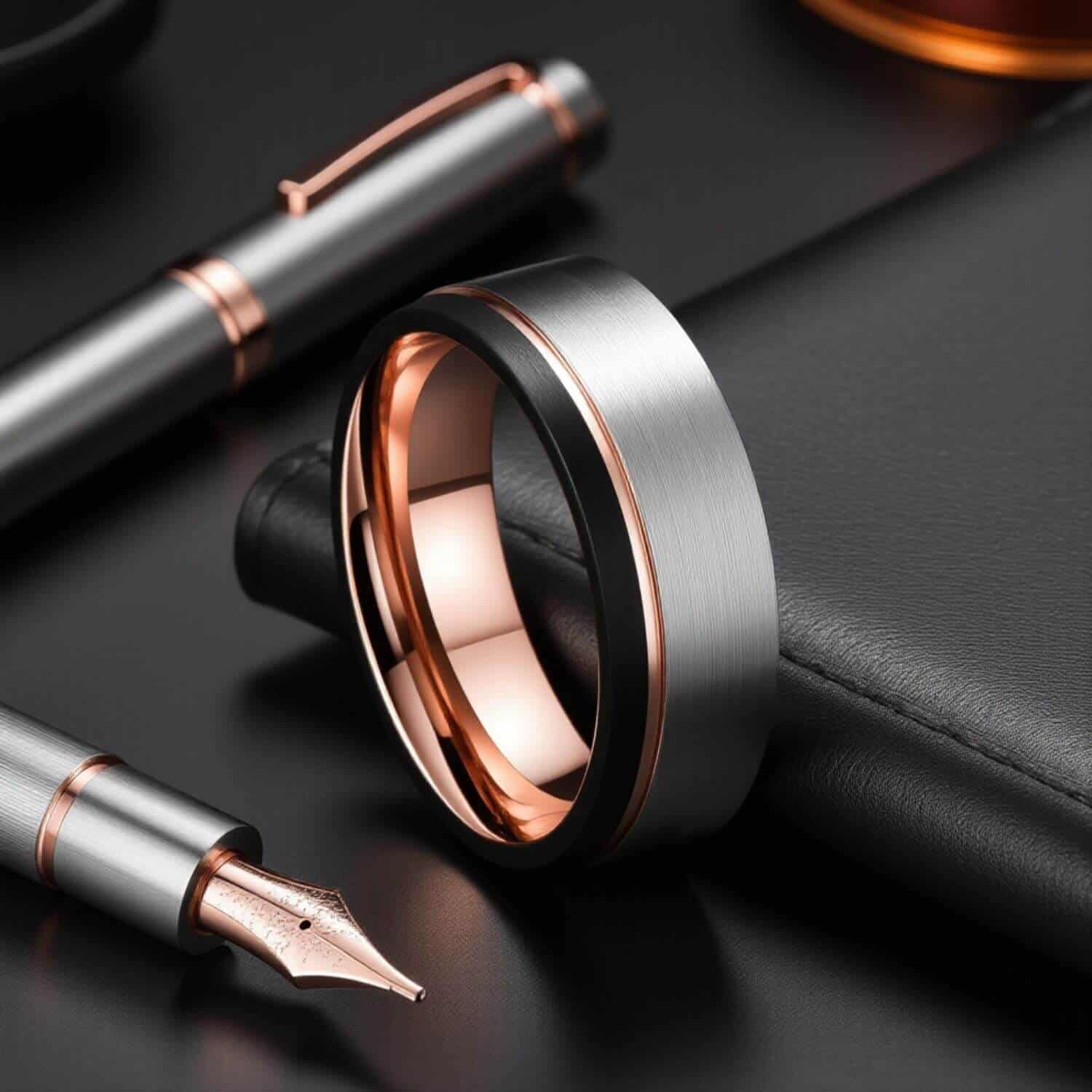 Traditional gold and silver scratch, bend and lose their shine. That doesn’t happen here. We use a high end process called PVD plating which is the same process used on high end watches to keep your ring looking great.