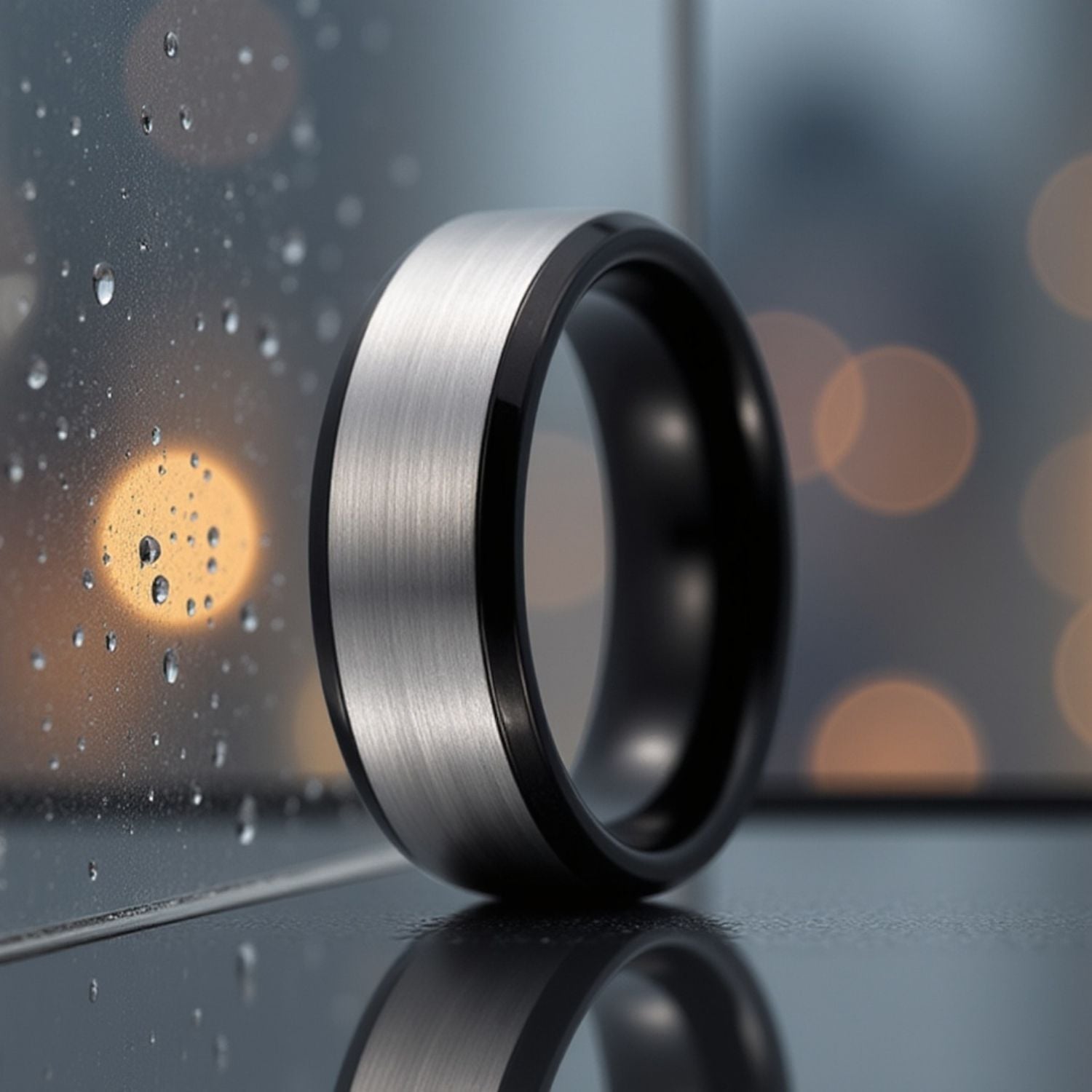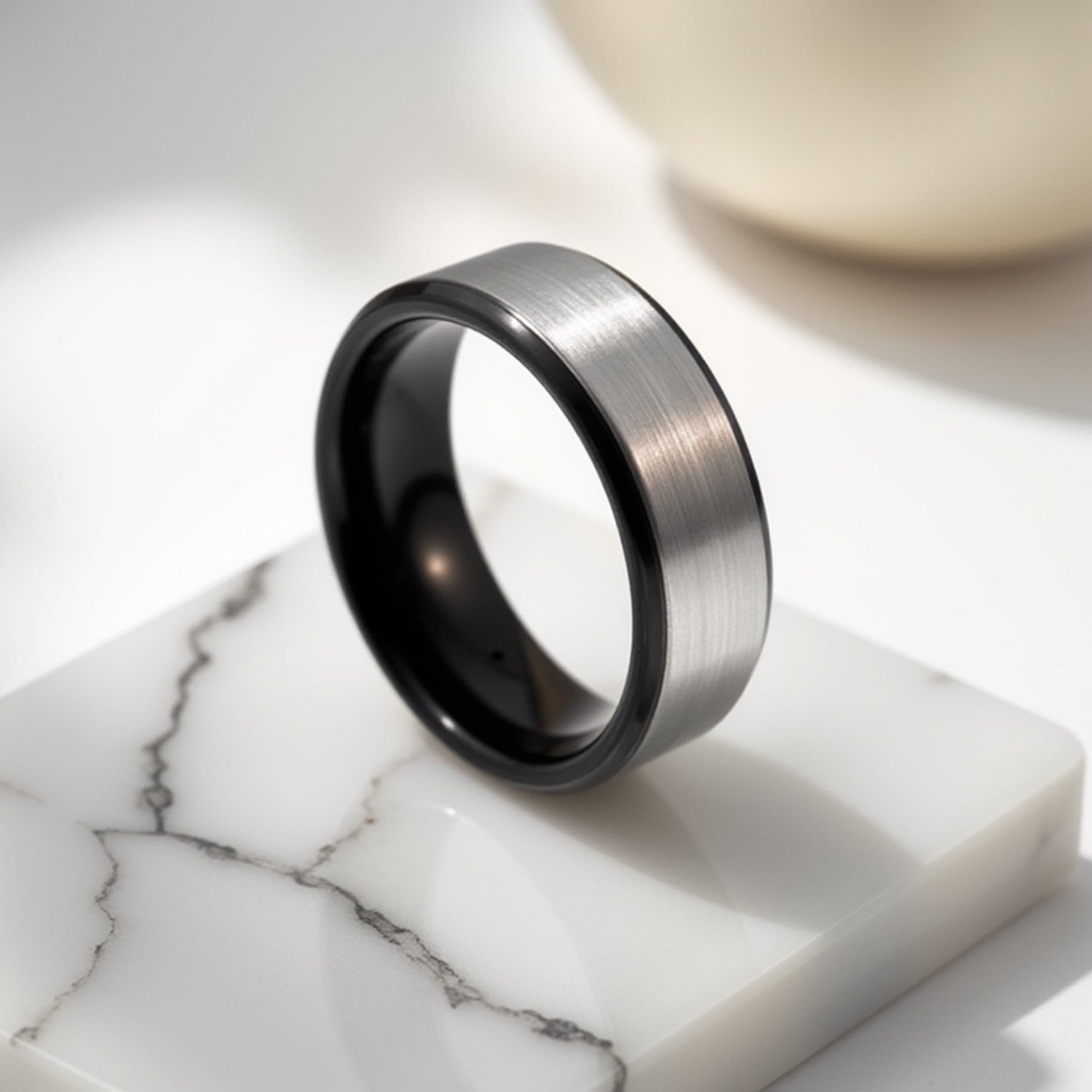 A bold and stylish mens tungsten wedding ring, the Spry is made for men who live with confidence. Featuring a sleek blend of brushed silver and polished black tungsten, this handcrafted band is both striking and durable. Perfect as a mens wedding band, engagement ring, eternity ring, or promise gift. Add a personalised engraving to make this unique gent’s band truly your own.