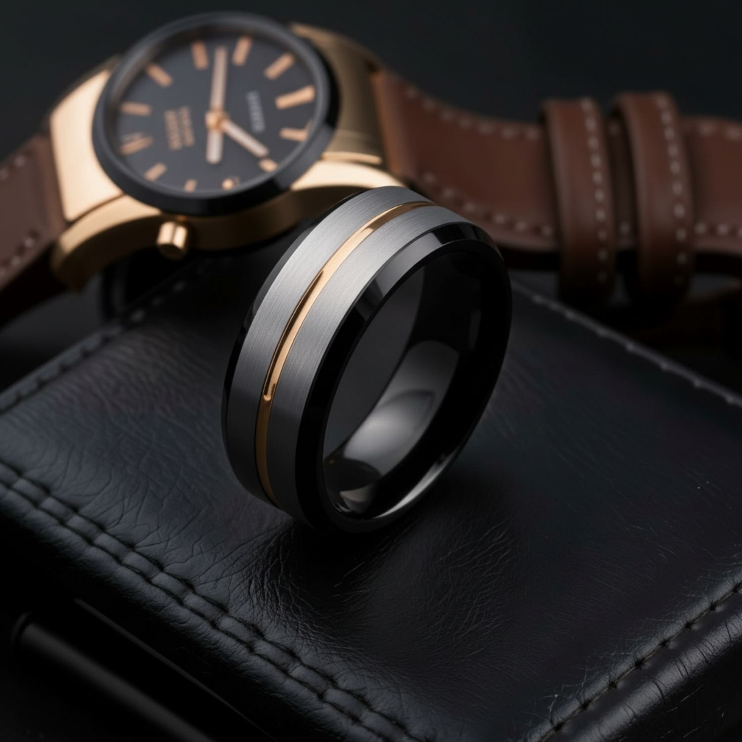 Tungsten carbide is one of the strongest, most scratch-resistant metals available, ensuring The Champion maintains its polished, triple-tone brilliance for years. Its combination of durability and elegance makes it an excellent choice for men’s wedding and fashion rings.