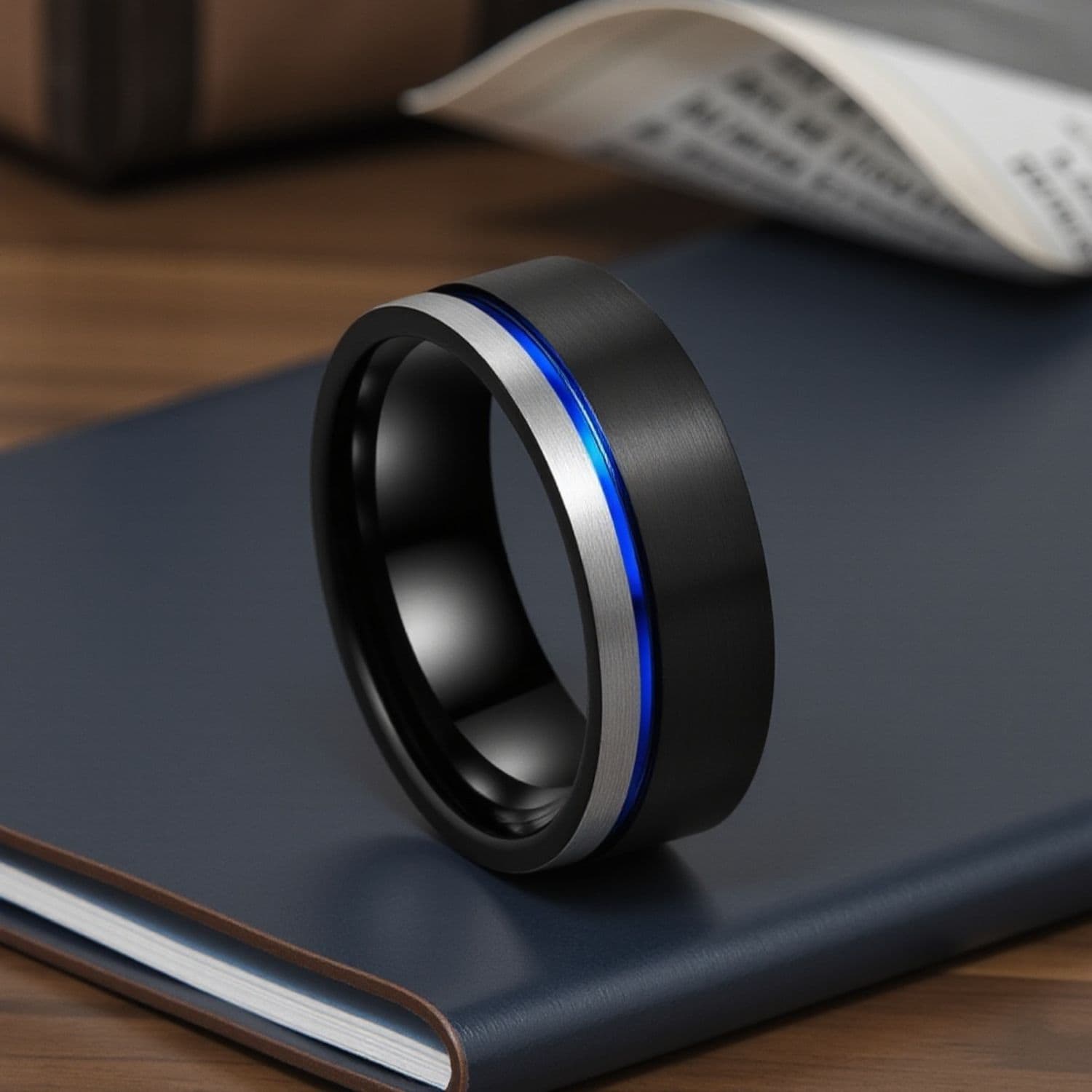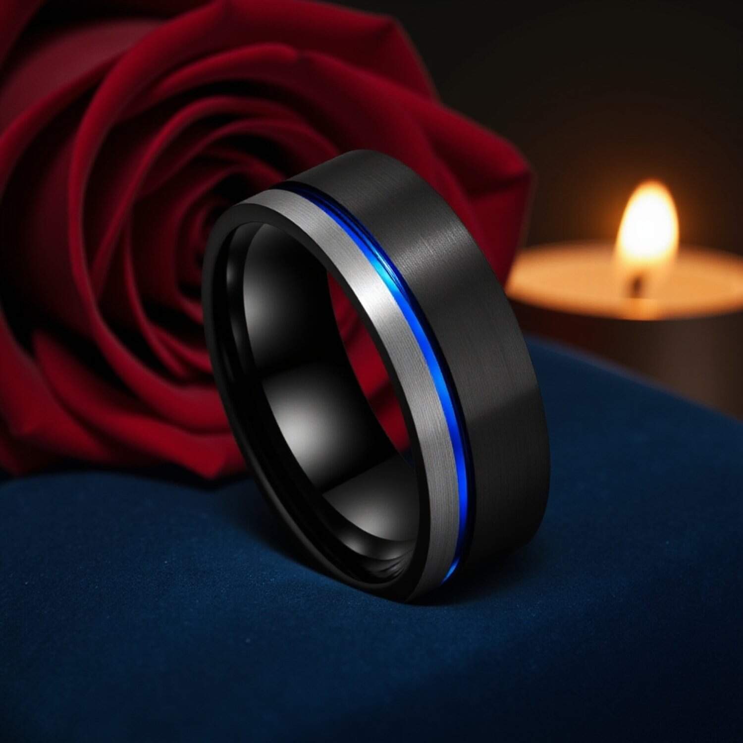 Paramount - Men's Tungsten Ring - Black, Blue, Silver Band for Him 8mm