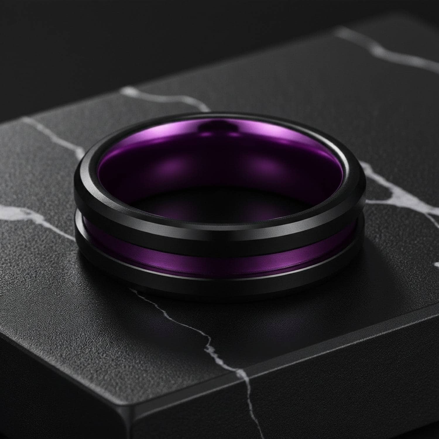 Perfect as a men’s wedding band, engagement ring, or fashionable statement piece, the Roxo stands apart from the ordinary. Whether worn daily or saved for special occasions, its striking black-and-purple contrast ensures it always looks refined and distinctive.