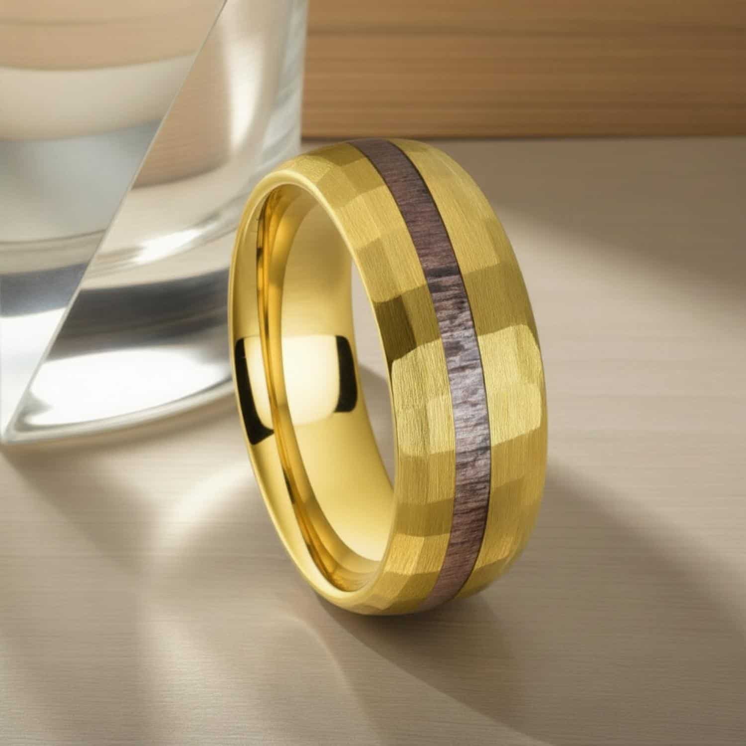 - Hammered gold tungsten finish – highly reflective and eye-catching from every angle