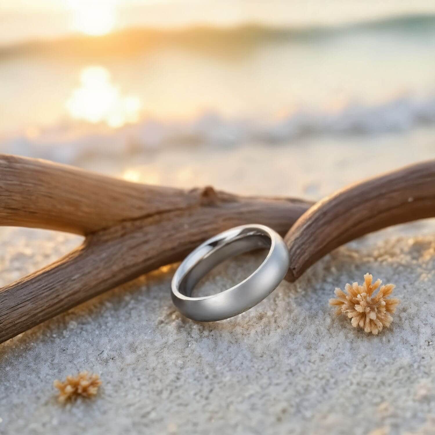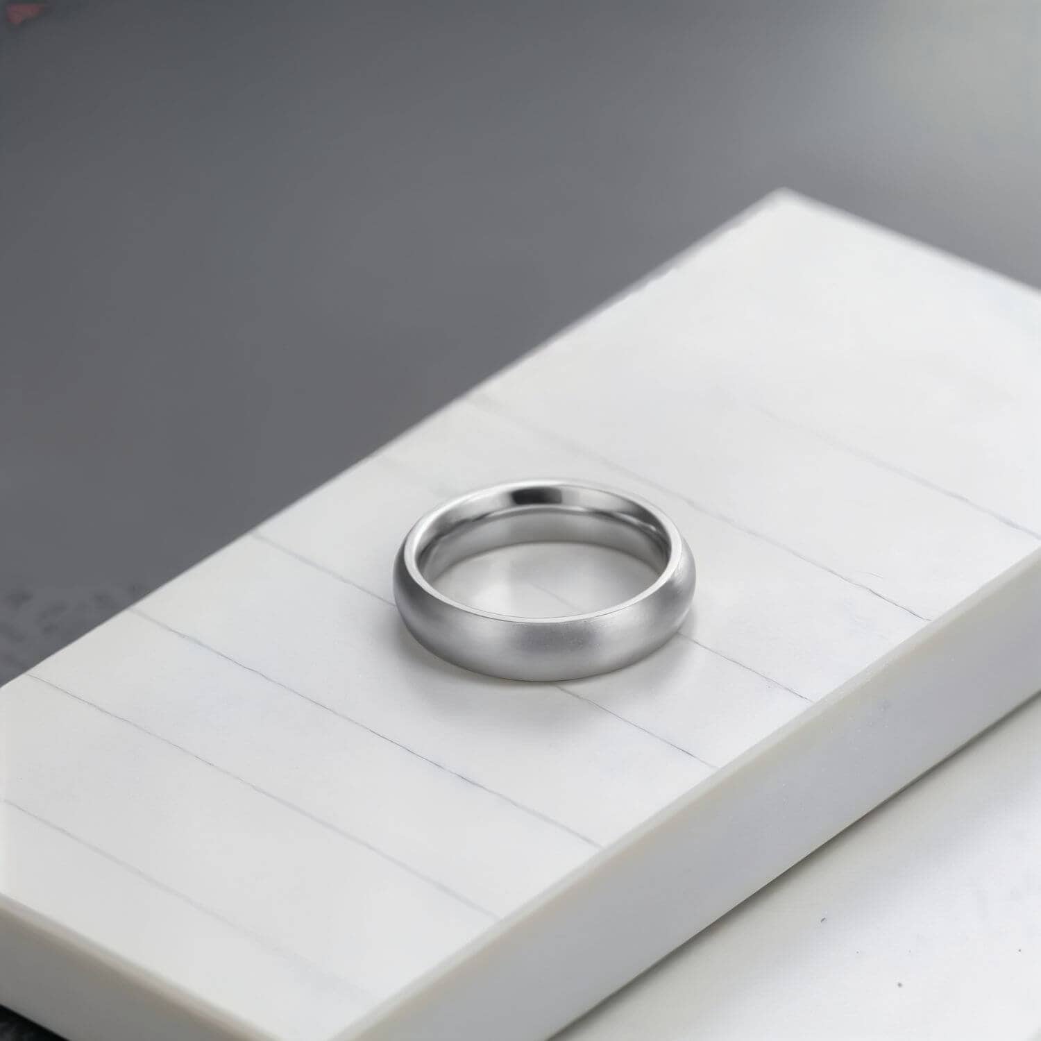 Titanium rates 6 on the Mohs hardness scale — harder than gold and platinum, and tough enough for daily wear. It will develop a fine patina of surface marks over time, but these polish out easily. The real advantage is weight: titanium is roughly 50% lighter than traditional metals. Combined with a 4mm width, that makes the Tender one of the lightest metal rings you can wear.