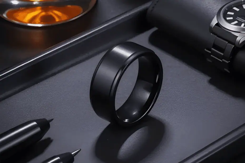 Titanium is a metal used in aerospace and medical implants, prized for its outstanding strength-to-weight ratio. It is the go-to choice for any active man who wants a ring that feels “barely there.”