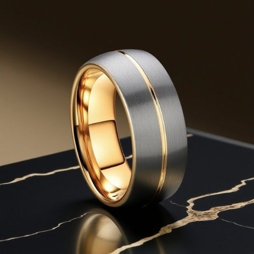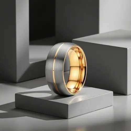 Order yours today and enjoy a sleek two-tone band that blends classic silver with elegant gold for a distinctive men’s ring.