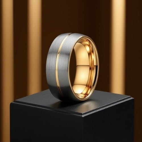Together - Men's Tungsten Ring - Silver & Gold Men's Wedding Band Engagement Ring 8mm