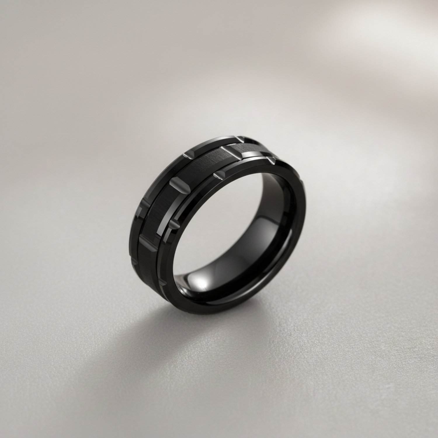 The Tyrone embodies confidence, strength, and presence. With its bold pattern and powerful black aesthetic, it’s a ring that reflects a man who isn’t afraid to make an impression. This gent’s band is as striking as the personality it’s designed for.