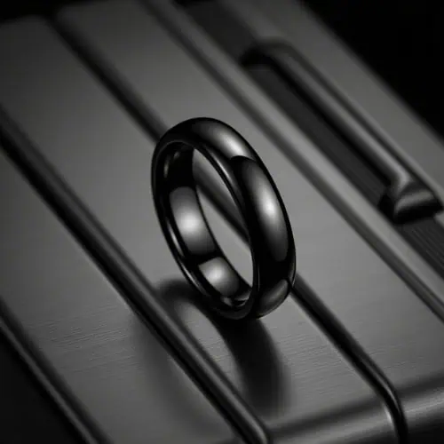 The Venture is a sleek mens titanium ring in polished black, crafted with a slim 4mm domed profile for a clean and contemporary look. Lightweight yet durable, this versatile mens band makes an elegant choice as a mens wedding ring, engagement ring, eternity ring or promise band, while also serving as a stylish everyday ring or meaningful gift. Engraving and personalisation are available, so you can mark it with a message that matters.